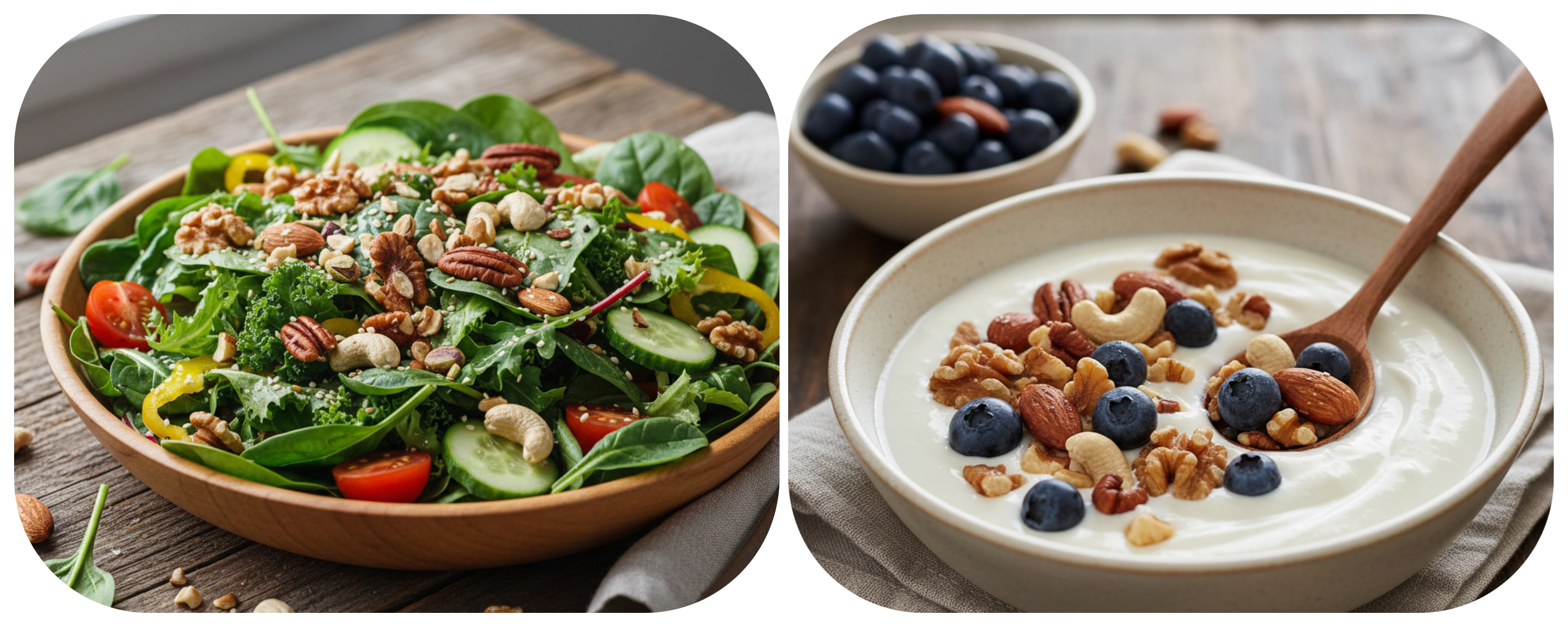 - 效果: 藍莓的花青素加上堅果的維他命 E,是強強聯手的抗氧化組合,讓你從早餐開始就自帶光彩。