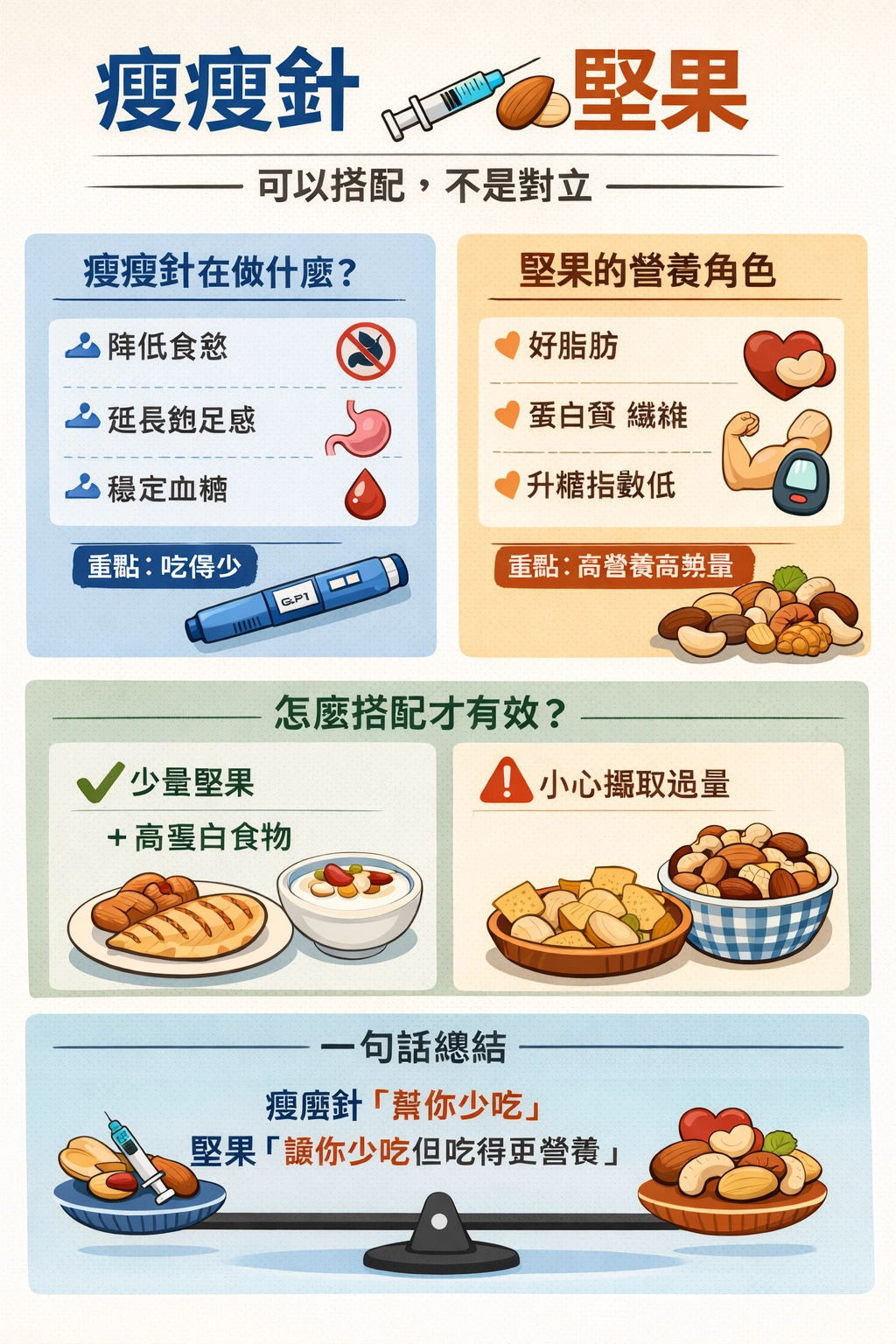 瘦瘦針幫你少吃,堅果補充好脂肪,高蛋白幫你真正燃脂