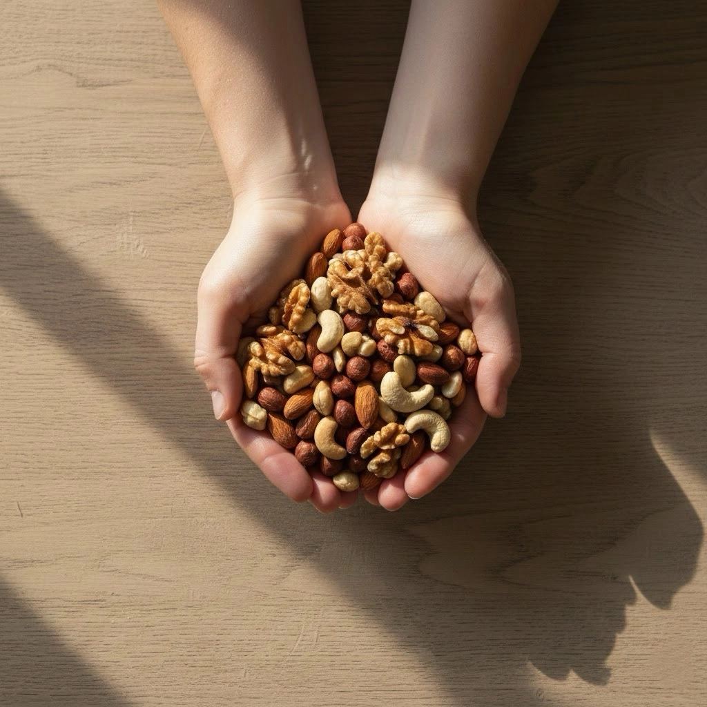 堅果熱量確實不低──以一小把(約28 g)堅果計算,熱量約在 160–200 kcal 之間。
