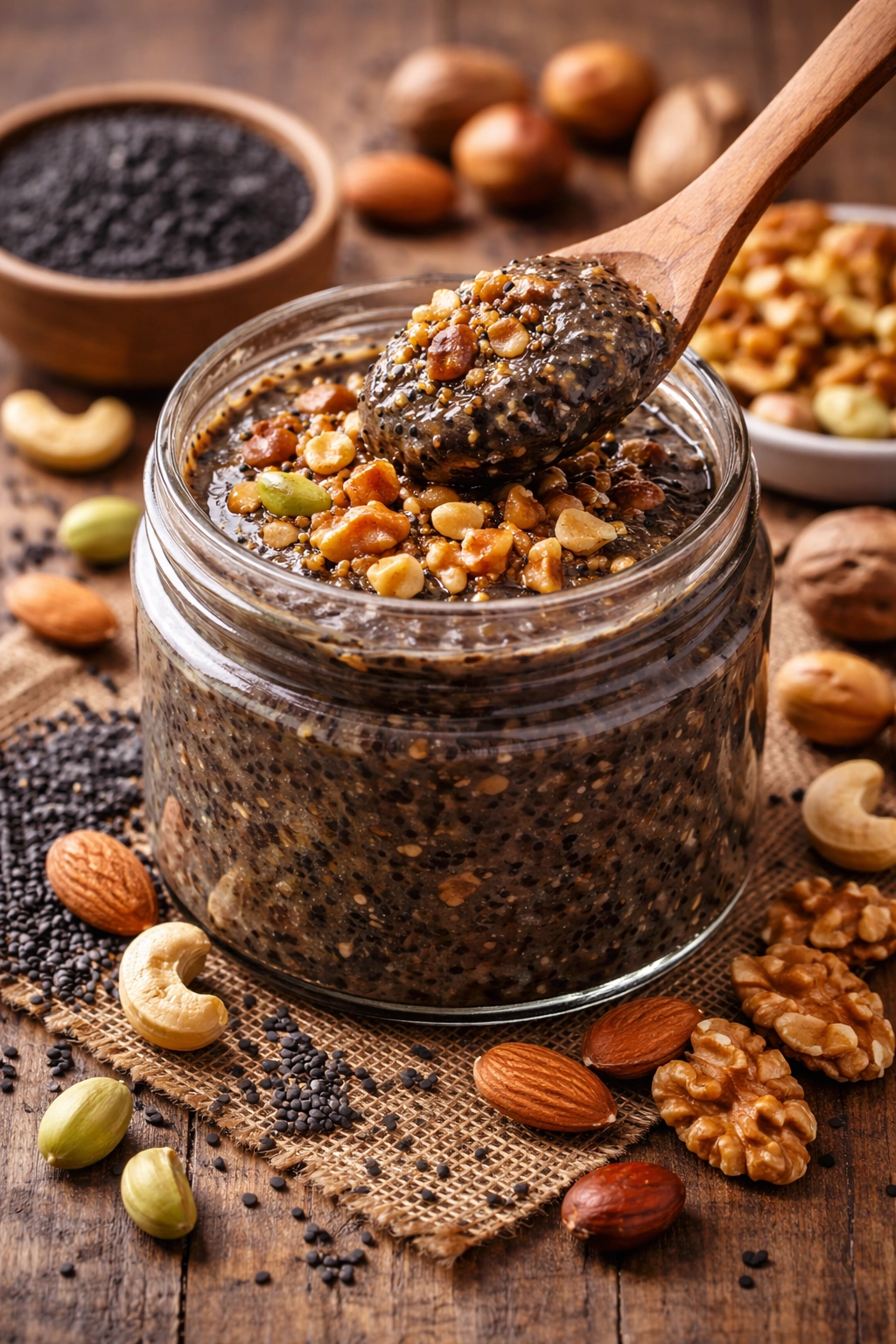 作為東方飲食文化中極具代表性的食材,長期被視為「沉默但可靠」的存在。它沒有鮮豔色彩,也不帶張揚香氣,卻在營養結構上極為紮實。當黑芝麻與各類堅果並置討論時,重點不僅在於滋補或風味,而是如何在脂肪酸結構、植物性蛋白與微量營養素之間形成互補。黑芝麻本身富含天然油脂與植化素,而杏仁、核桃、腰果、榛果、夏威夷豆等堅果,則各自承擔不同的營養角色,這樣的組合更像是一個「功能分工明確的團隊」,而非單一明星食材。